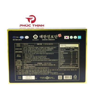 Dòng sản phẩm an cung trầm hương Daehan Jinbodan 3,75g x 60 viên là một trong những sản phẩm tiêu biểu của hãng, kết hợp các thảo dược Đông y như hồng sâm, trầm hương, hoàng kỳ, đương quy… Viên hoàn mềm tiện dụng, phù hợp cho người trưởng thành có nhu cầu bồi bổ sức khỏe và duy trì thể trạng ổn định theo hướng tự nhiên.