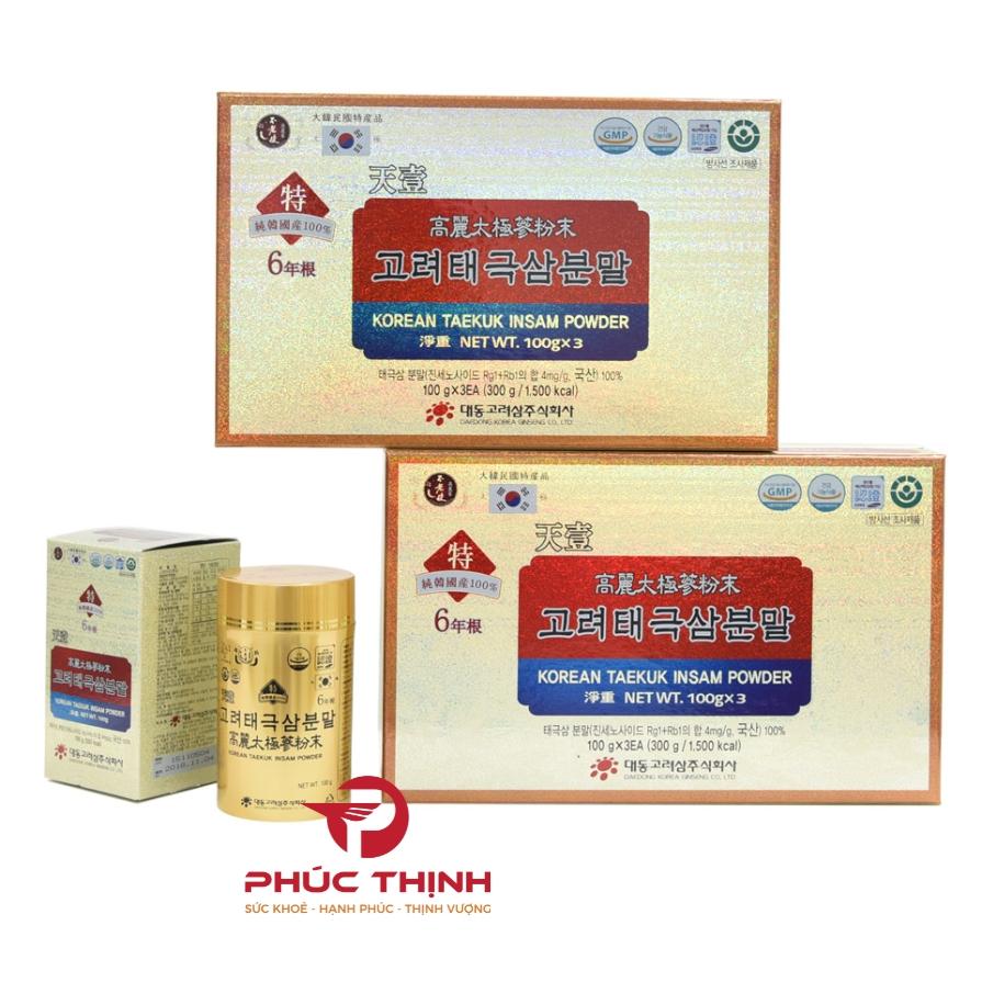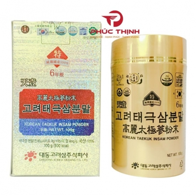 Bột thái cực sâm 100% là một trong những dòng sản phẩm đặc trưng của hãng, được chế biến từ thái cực sâm bằng phương pháp hấp sấy nhiều lần, sau đó nghiền mịn. Sản phẩm có độ tinh khiết cao, không pha trộn phụ gia, được đóng gói theo định lượng 100g x 3 lọ, với hàm lượng saponin 4mg/g - phù hợp cho người cần bồi bổ sức khỏe, phục hồi thể lực hoặc hỗ trợ miễn dịch.