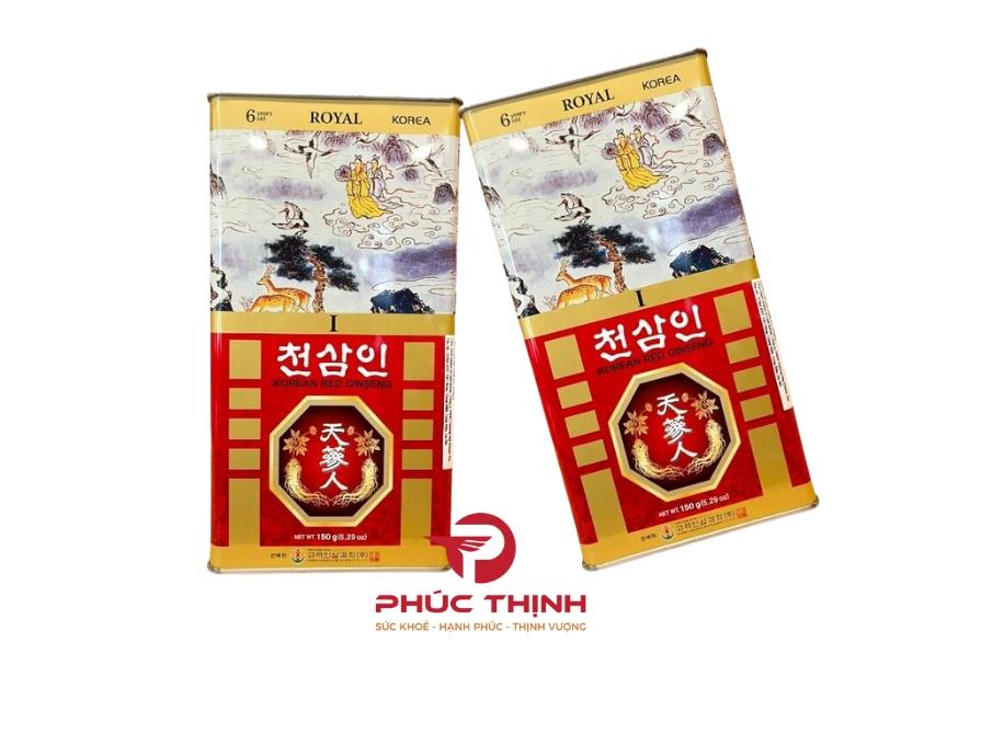 Hồng sâm củ khô Hàn Quốc hộp thiếc 150g (loại 8 củ) là sản phẩm tinh tuyển từ những củ nhân sâm 6 năm tuổi – độ tuổi lý tưởng để đạt được hàm lượng saponin và dưỡng chất cao nhất. Thông qua quá trình hấp sấy truyền thống nghiêm ngặt, sản phẩm giữ lại trọn vẹn hoạt chất quý như ginsenosid, polysaccharide, acid amin và khoáng chất vi lượng.