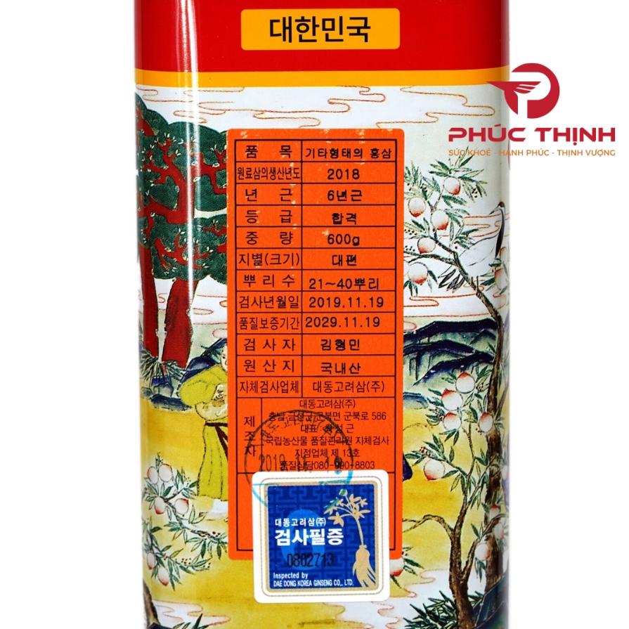Dòng hồng sâm củ khô của Daedong được chế biến từ nhân sâm 6 năm tuổi, trải qua quá trình hấp sấy theo phương pháp truyền thống nhằm tăng cường hàm lượng saponin và ổn định hoạt tính dược lý. Sản phẩm được phân loại theo trọng lượng và số lượng củ, trong đó loại Premium 600g (21-40 củ) là lựa chọn phổ biến, phù hợp với người dùng cá nhân, người cao tuổi và làm quà tặng sức khỏe.
