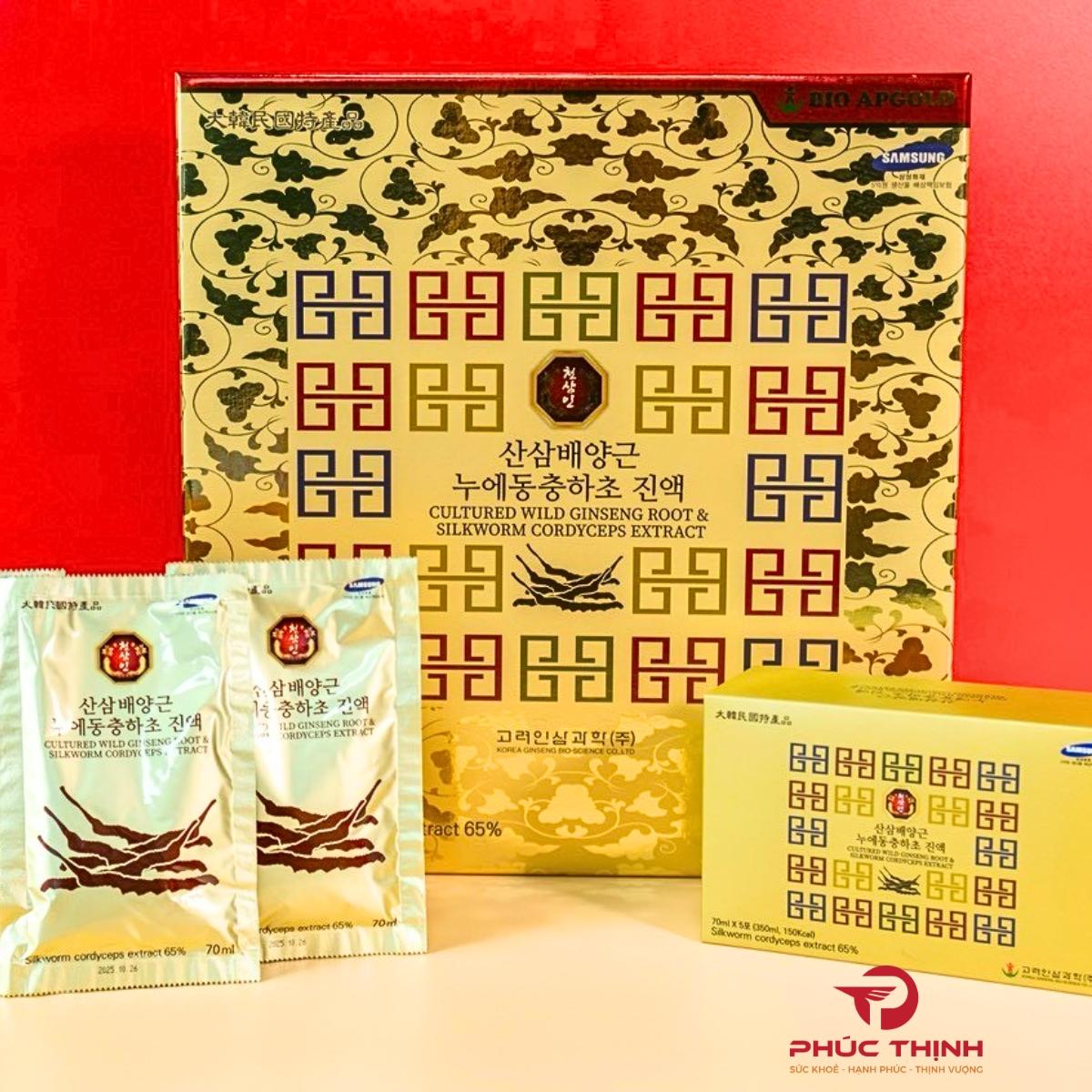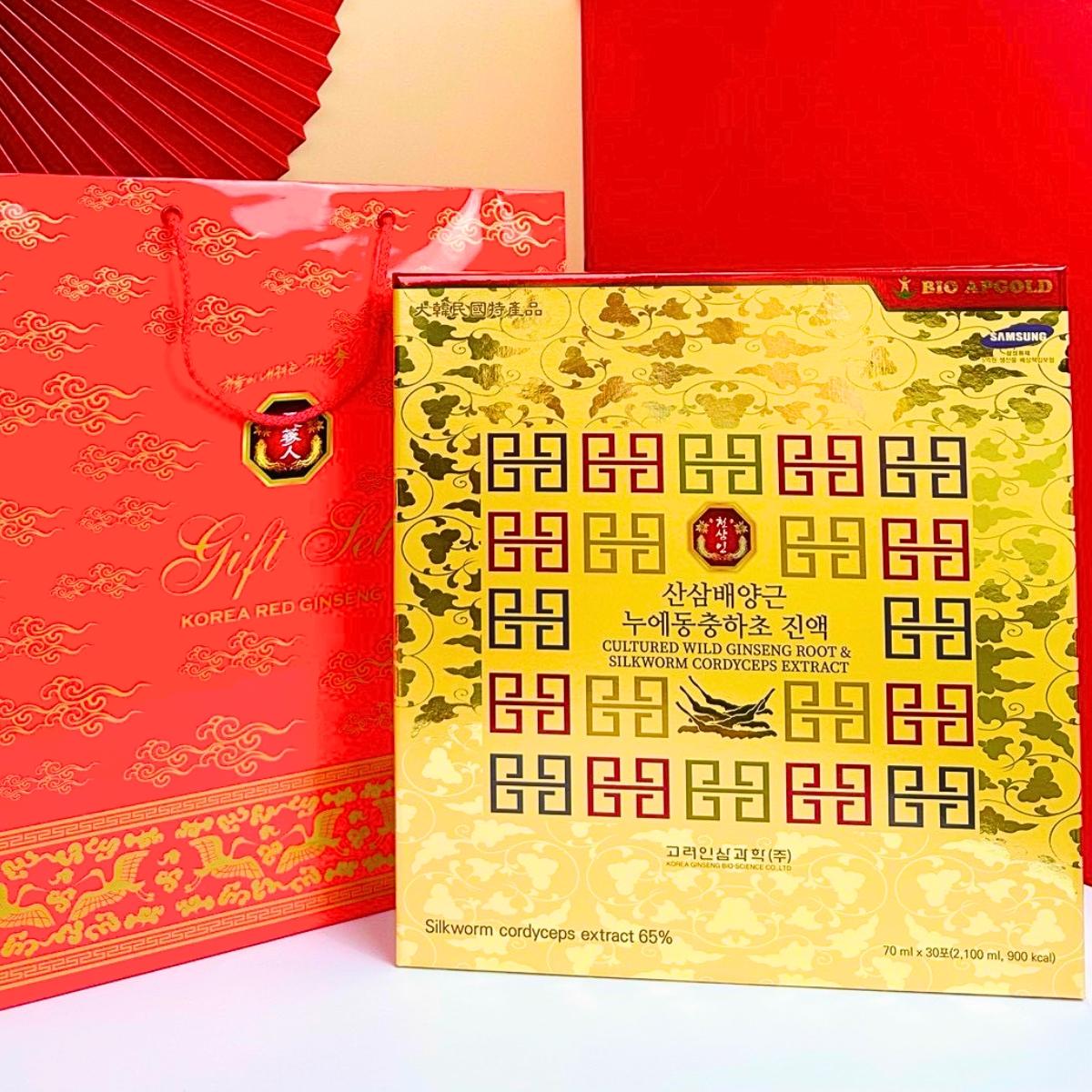 Dòng nước đông trùng hạ thảo của Bio Appgold được phát triển dưới nhiều công thức kết hợp khác nhau như: đông trùng hạ thảo nguyên chất, kết hợp sâm núi, hoặc phối hợp cùng các thảo dược truyền thống như quế, đương quy, bạch truật. Sản phẩm được đóng gói dạng túi uống tiện lợi, phù hợp với người bận rộn, người cần bồi bổ thể lực hoặc hỗ trợ phục hồi sức khỏe mỗi ngày.