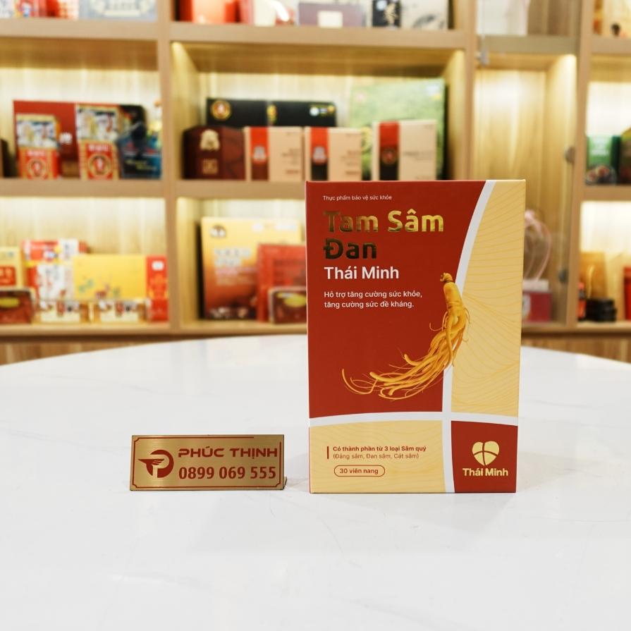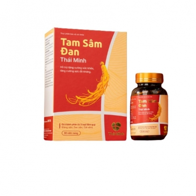 Tam Sâm Đan là một trong những sản phẩm tiêu biểu của Thái Minh, thuộc nhóm thực phẩm bảo vệ sức khỏe, được thiết kế nhằm hỗ trợ bồi bổ cơ thể và nâng cao sức đề kháng. Sản phẩm kết hợp từ ba loại sâm quý gồm Đảng sâm, Đan sâm và Cát sâm, mỗi viên được chuẩn hóa hàm lượng để đảm bảo chất lượng và hiệu quả. Quy cách đóng gói hộp 30 viên tiện dụng, phù hợp cho người trưởng thành muốn cải thiện sức khỏe hoặc phục hồi thể lực.