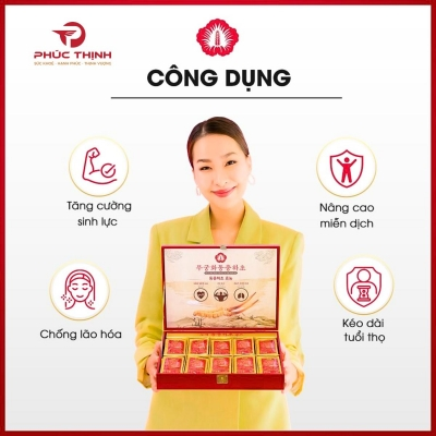Là sản phẩm chăm sóc sức khỏe dạng nước uống, chiết xuất từ đông trùng hạ thảo hòa tuyết, hồng sâm và nhiều thảo dược truyền thống Hàn Quốc, được đóng gói sẵn trong 60 gói tiện dùng.
