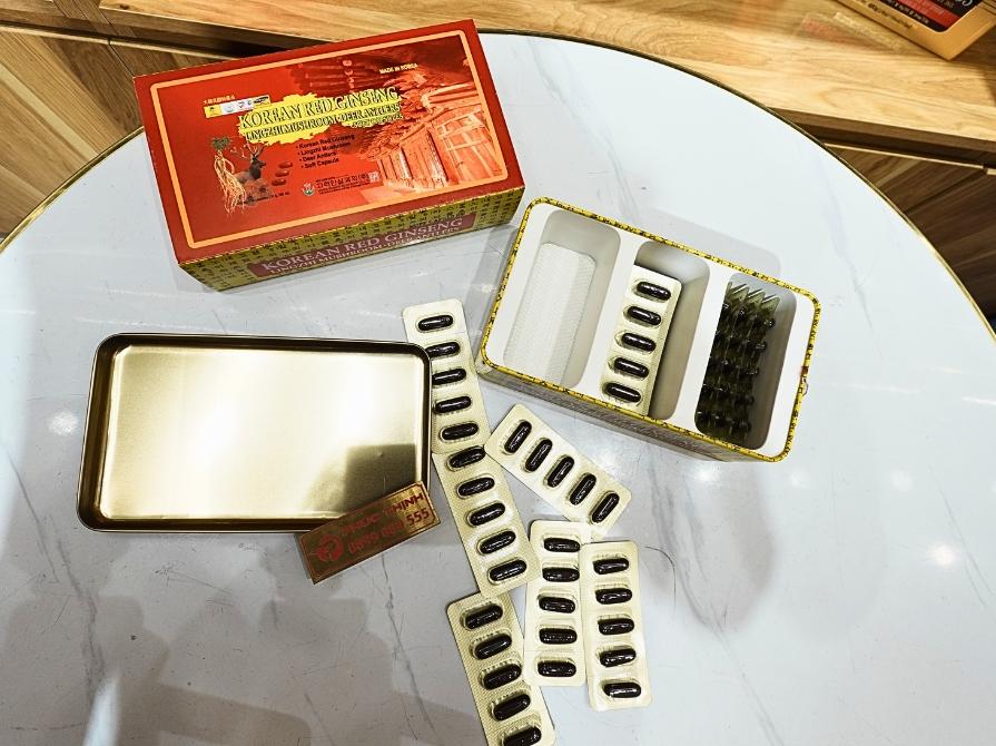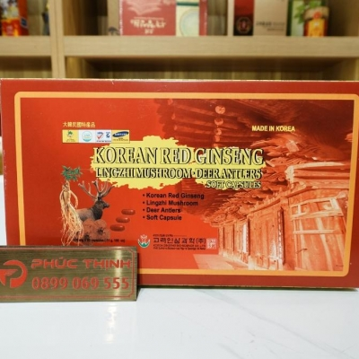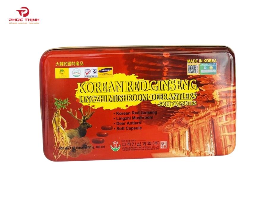 Đây là thực phẩm bảo vệ sức khỏe được sản xuất tại Hàn Quốc, kết hợp giữa hồng sâm 6 năm tuổi, nhung hươu và nấm linh chi. Sản phẩm đóng dạng viên hoàn mềm, tiện sử dụng hằng ngày, hỗ trợ tăng cường thể trạng và phục hồi sau mệt mỏi.