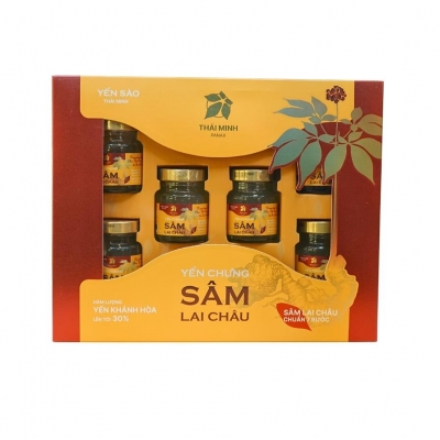 Yến sào Thái Minh - Yến chưng Sâm Lai Châu là sản phẩm kết hợp giữa hai nguyên liệu quý giá: yến nguyên chất từ Khánh Hòa và sâm Lai Châu trồng tại vùng đất Tây Bắc Việt Nam ạ